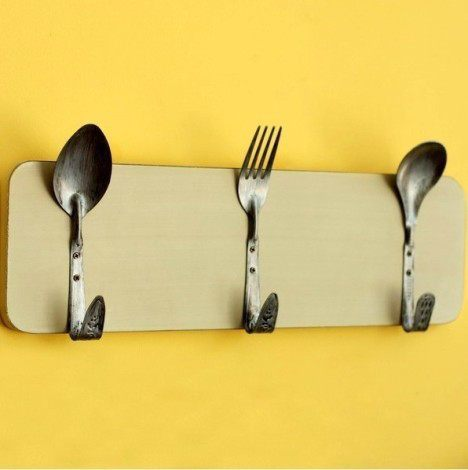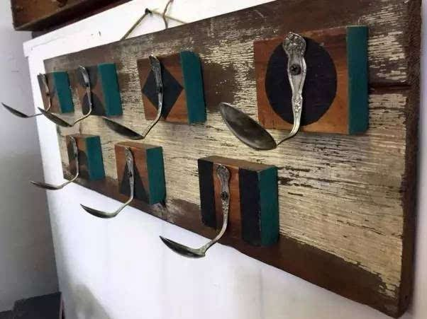 Usually, there is no shelf at the entrance. It's better to create a unique tableware shelf by yourself. Bend the tableware with pliers, and then fix it with screws. In the hallway and kitchen, it is practical and special.