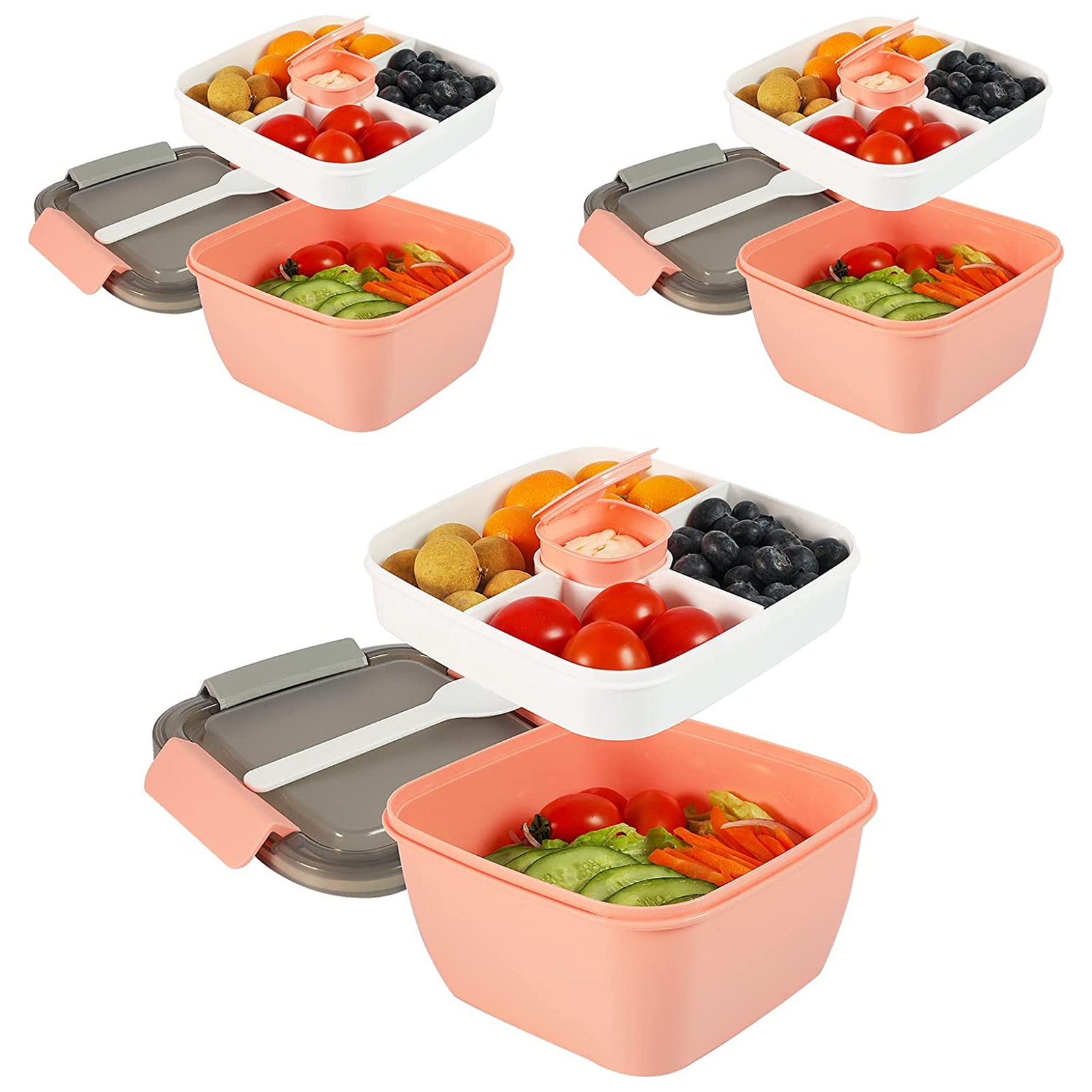 Shopwithgreen 52 OZ to Go Salad Container Lunch Container with 3-Compartment - Pink-3 pcs-shopwithgreen