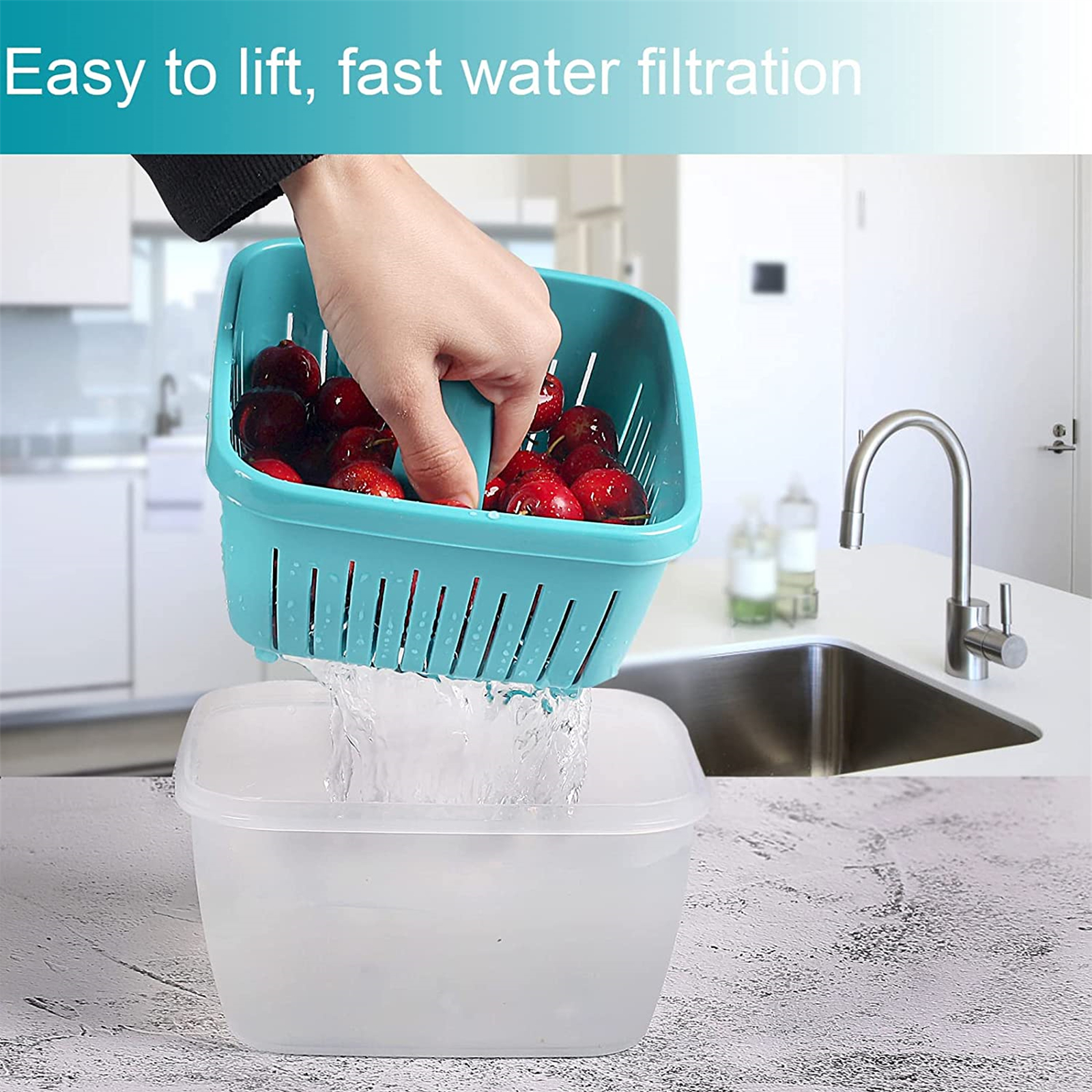 • 【Unique Multifunctional Design】These containers come with leak-proof lids and colanders. Rinse, filter and store the fruits in the container. Don't worry about water leakage, convenient to carry.